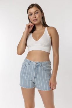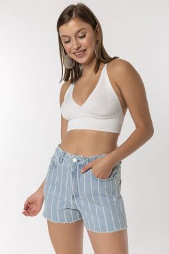 Açik Mavi Çizgili Şort
