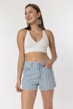 Açik Mavi Çizgili Şort
