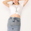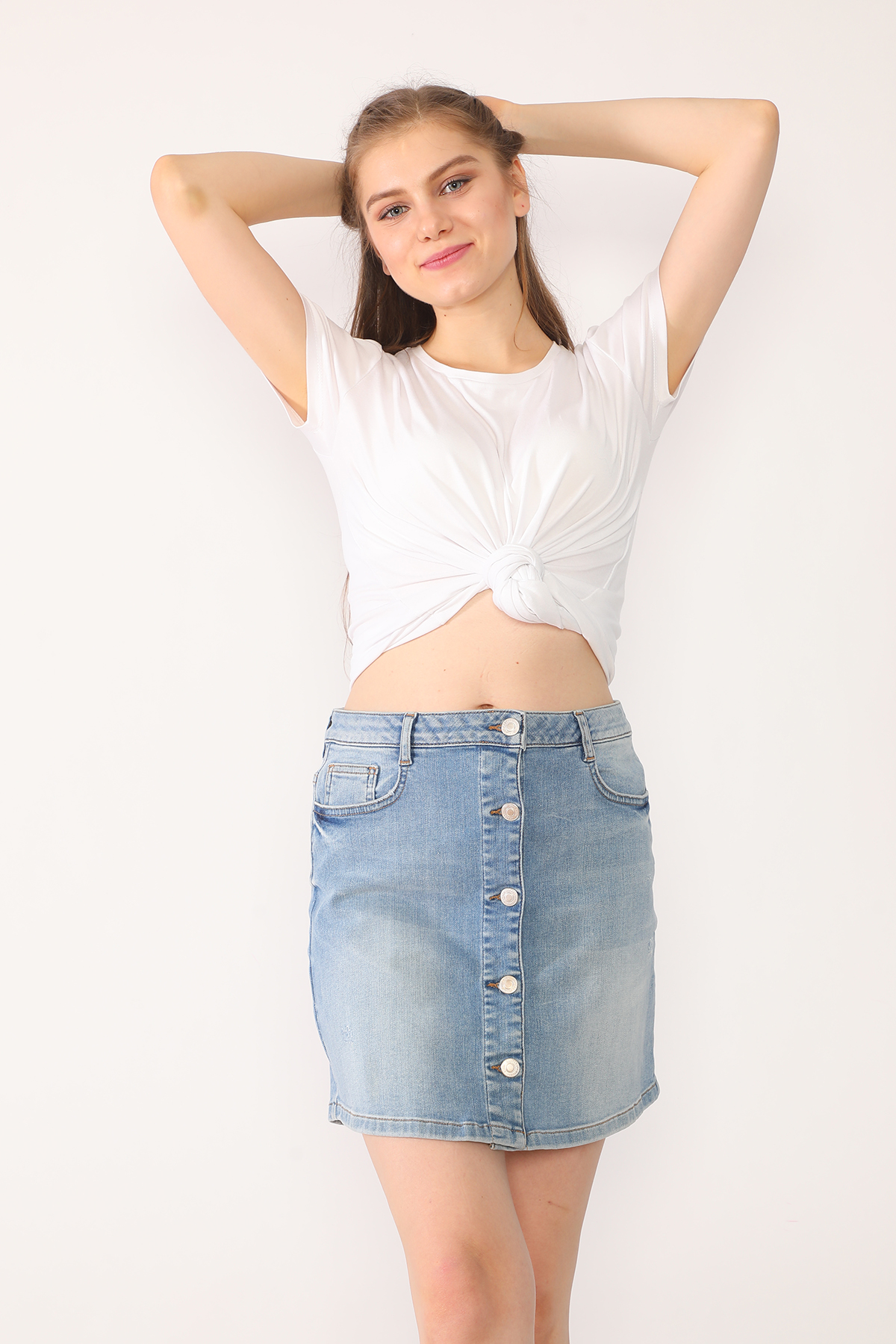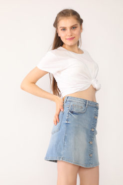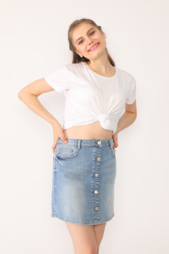 Açık Mavi Ön Patı Düğmeli Kot Etek