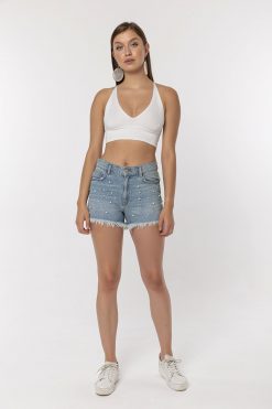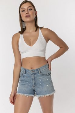Beyaz Boncuklu Şort