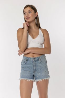 Beyaz Boncuklu Şort