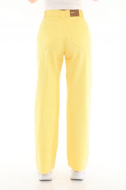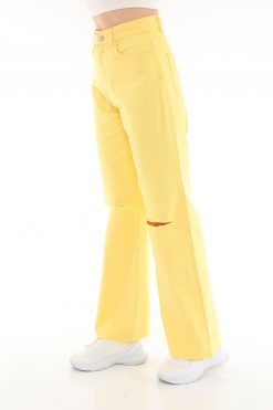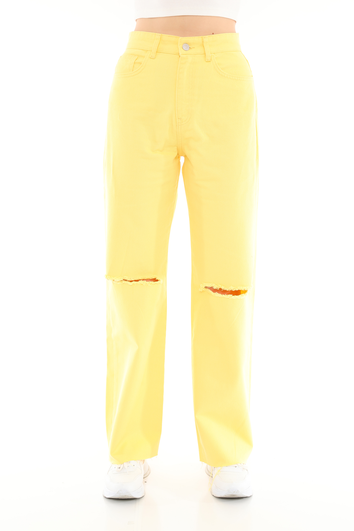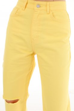 Sari Süper Yüksek Bel Dizi Kesikli Straight Fit Jean Pantolon