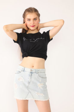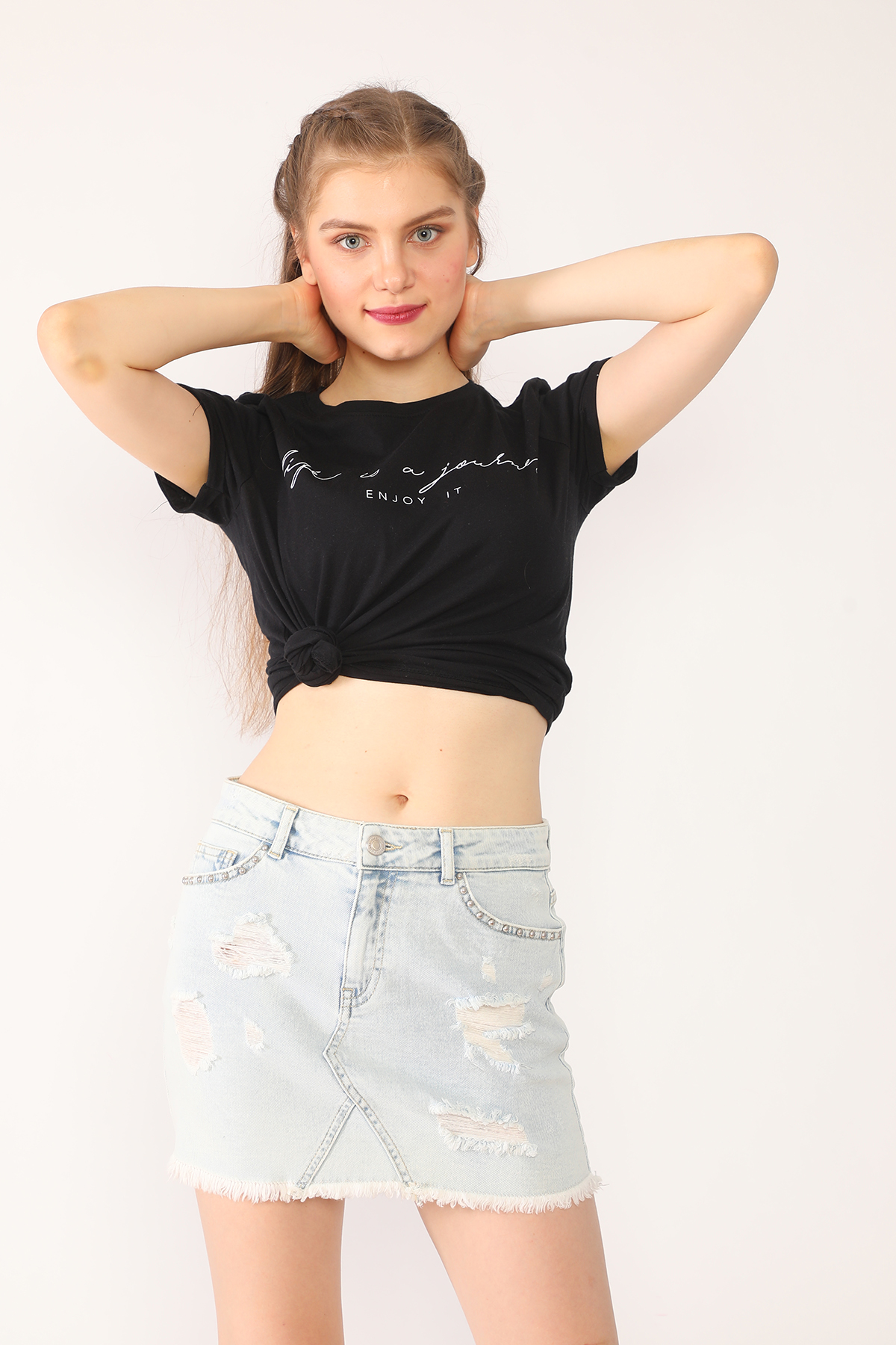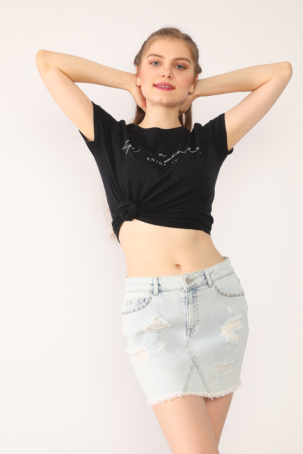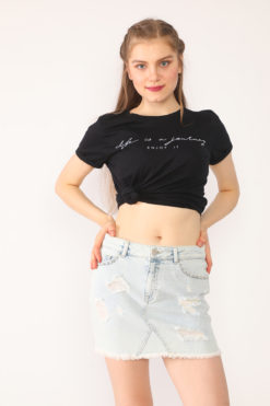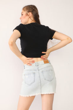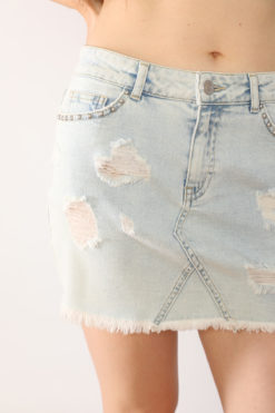 Boncuk Destroyed Açık Mavi Mini Kot Etek