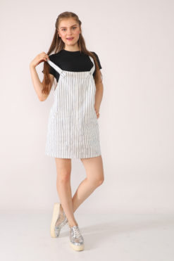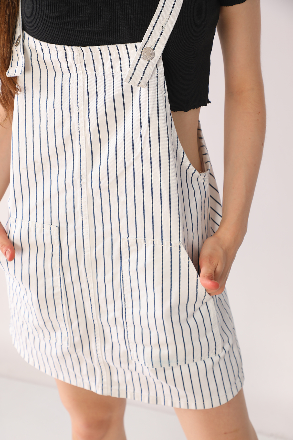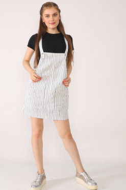 Çizgili Beyaz Kot Etek Salopet