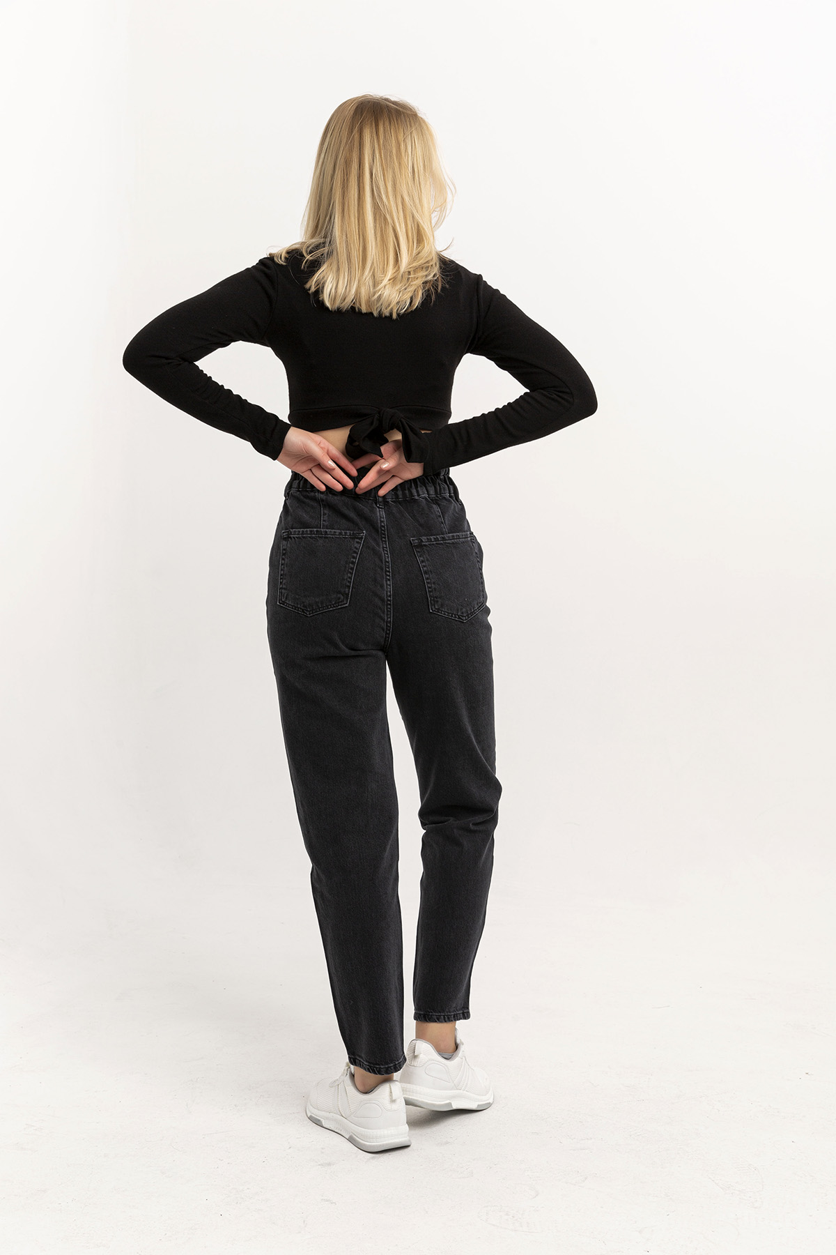 Kadın Siyah Yüksek Bel Baggy Fit Jean