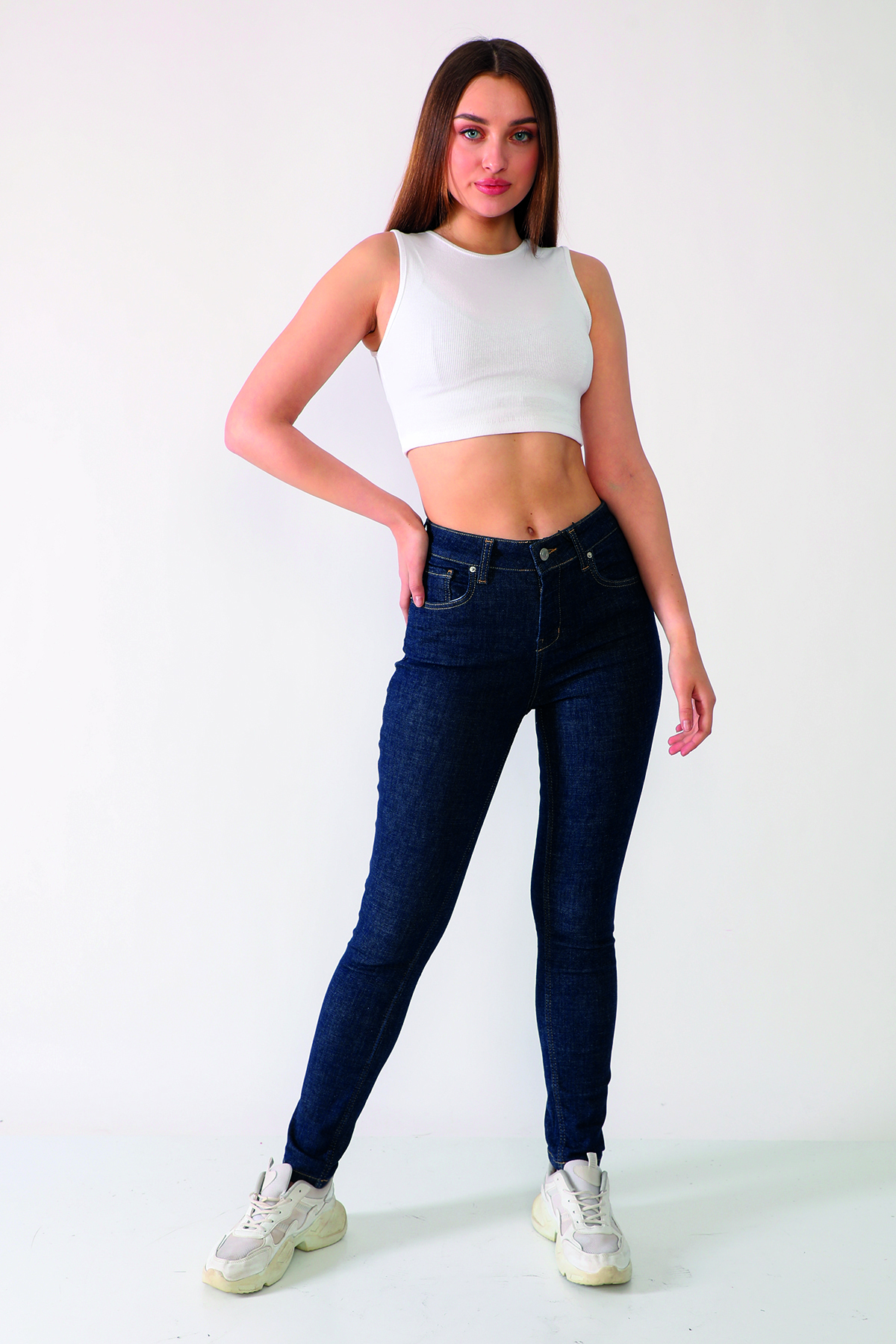 Koyu Mavi Yüksek Bel Skinny Jean