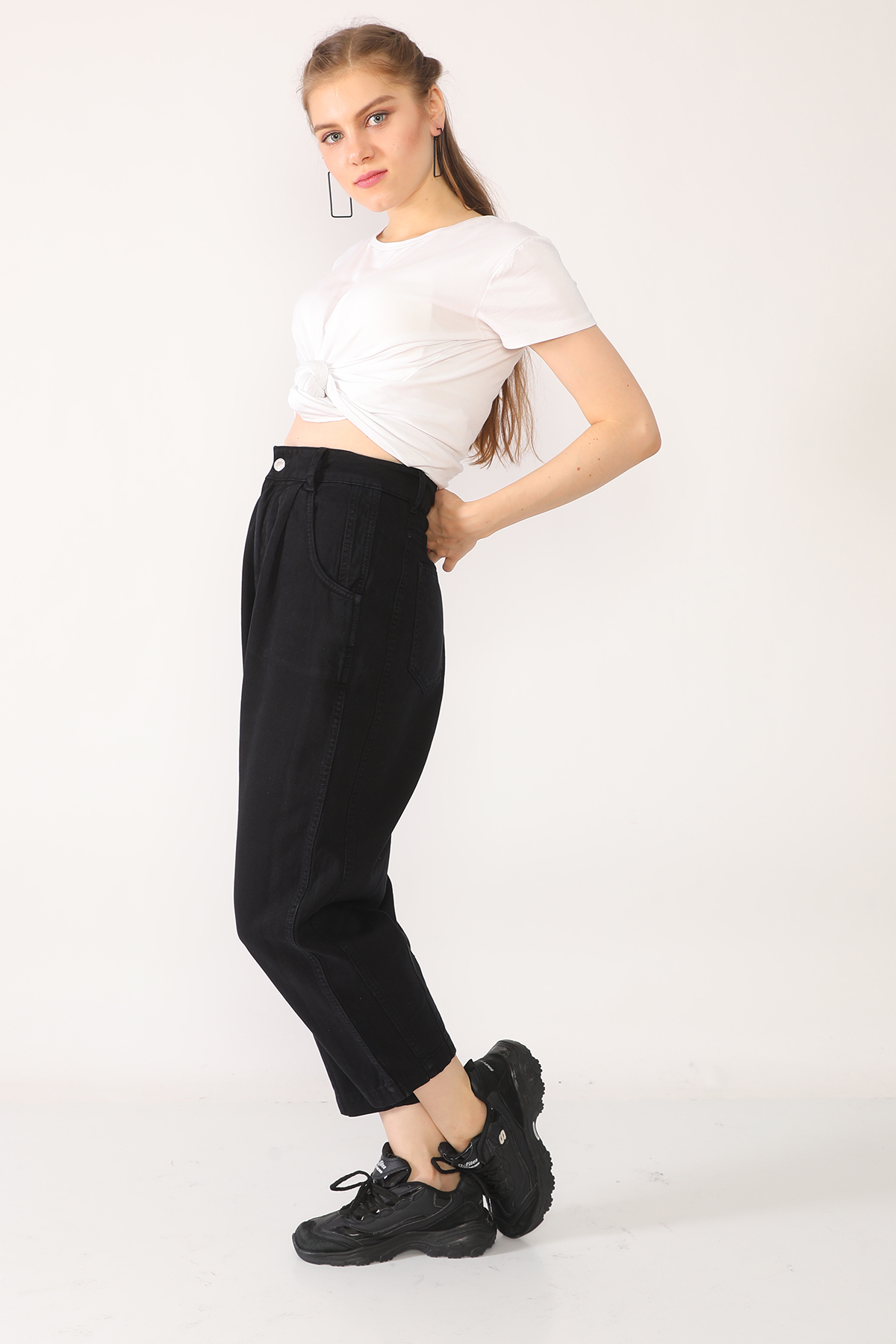 Siyah Yüksek Bel Balloon Fit Pantolon
