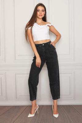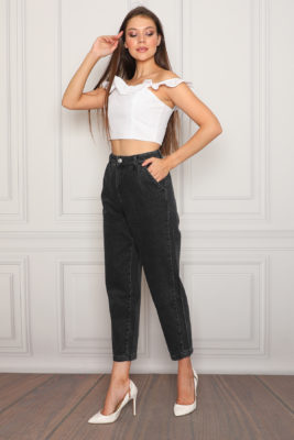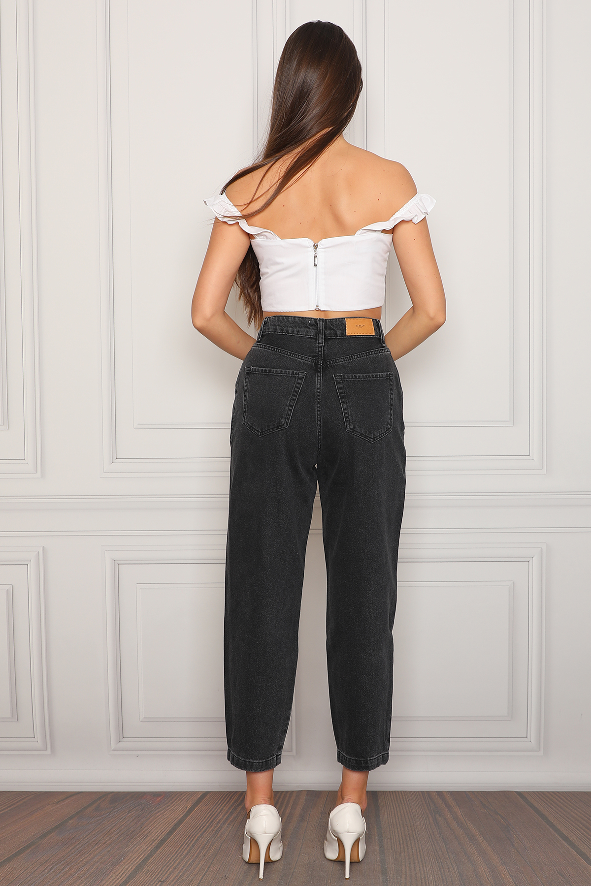 Siyah Yüksek Bel Havuç Kesim Pantolon