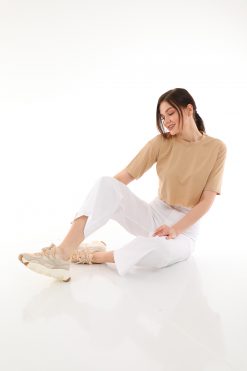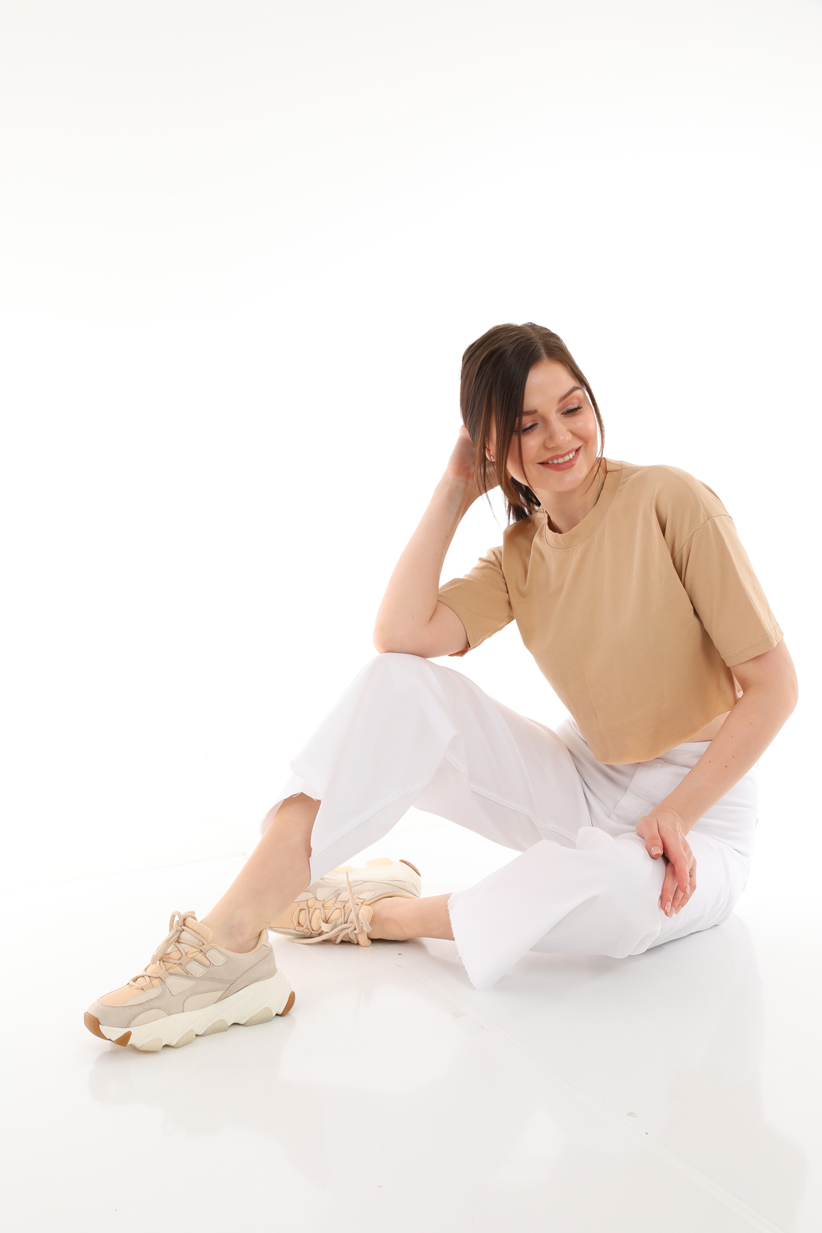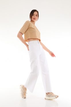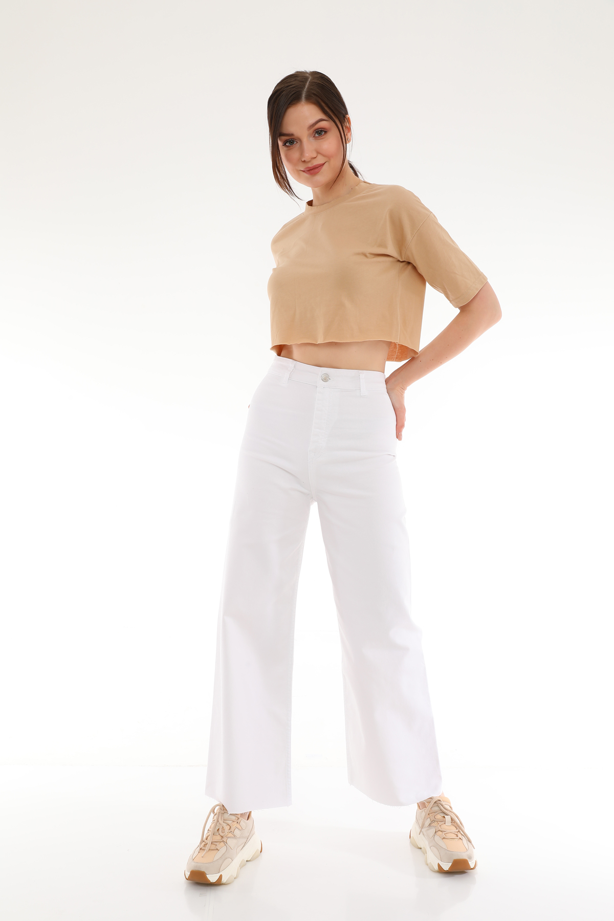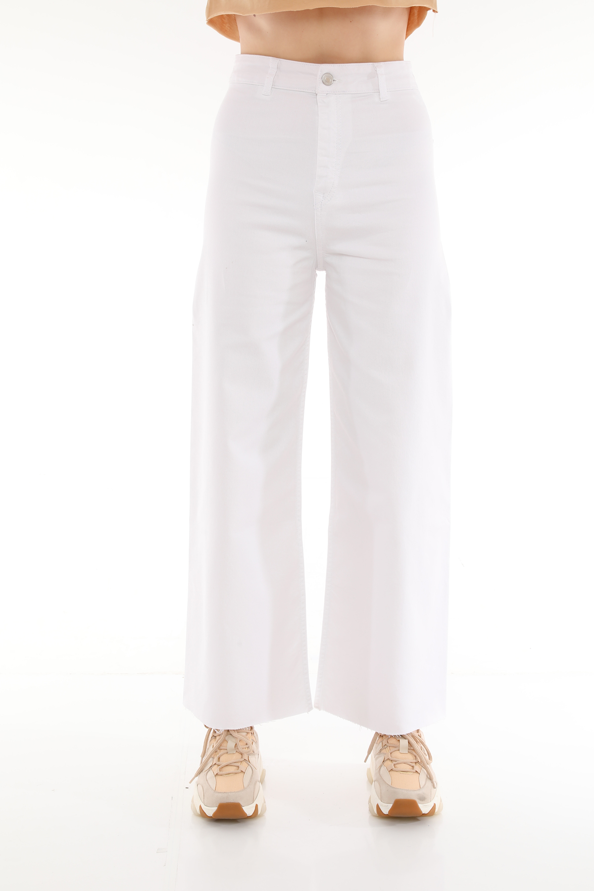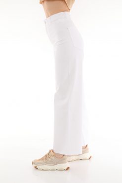 Süper Yüksek Bel Beyaz Dikişsiz Culotte Fit Pantolon