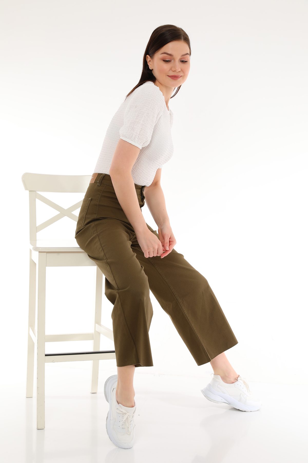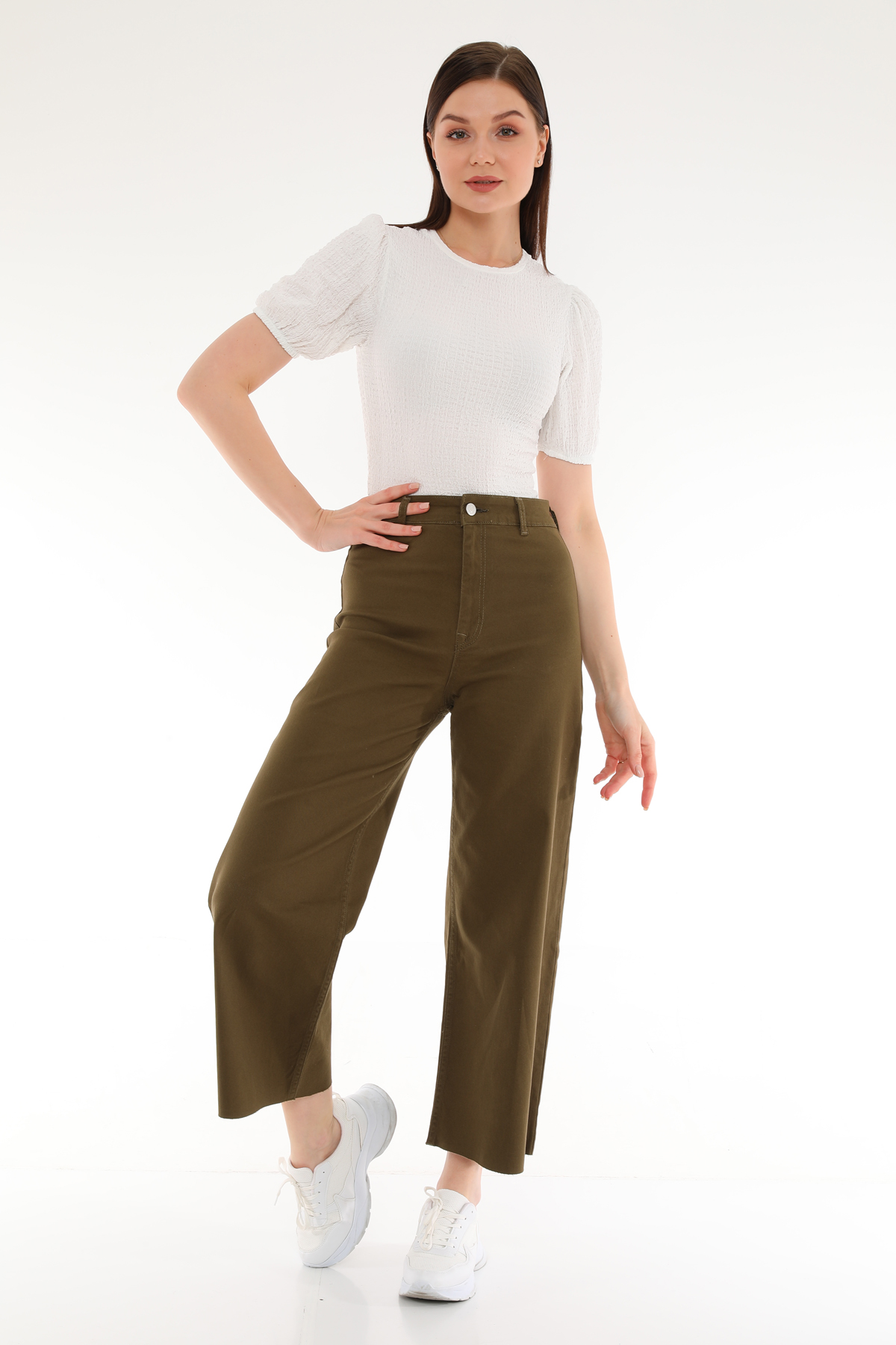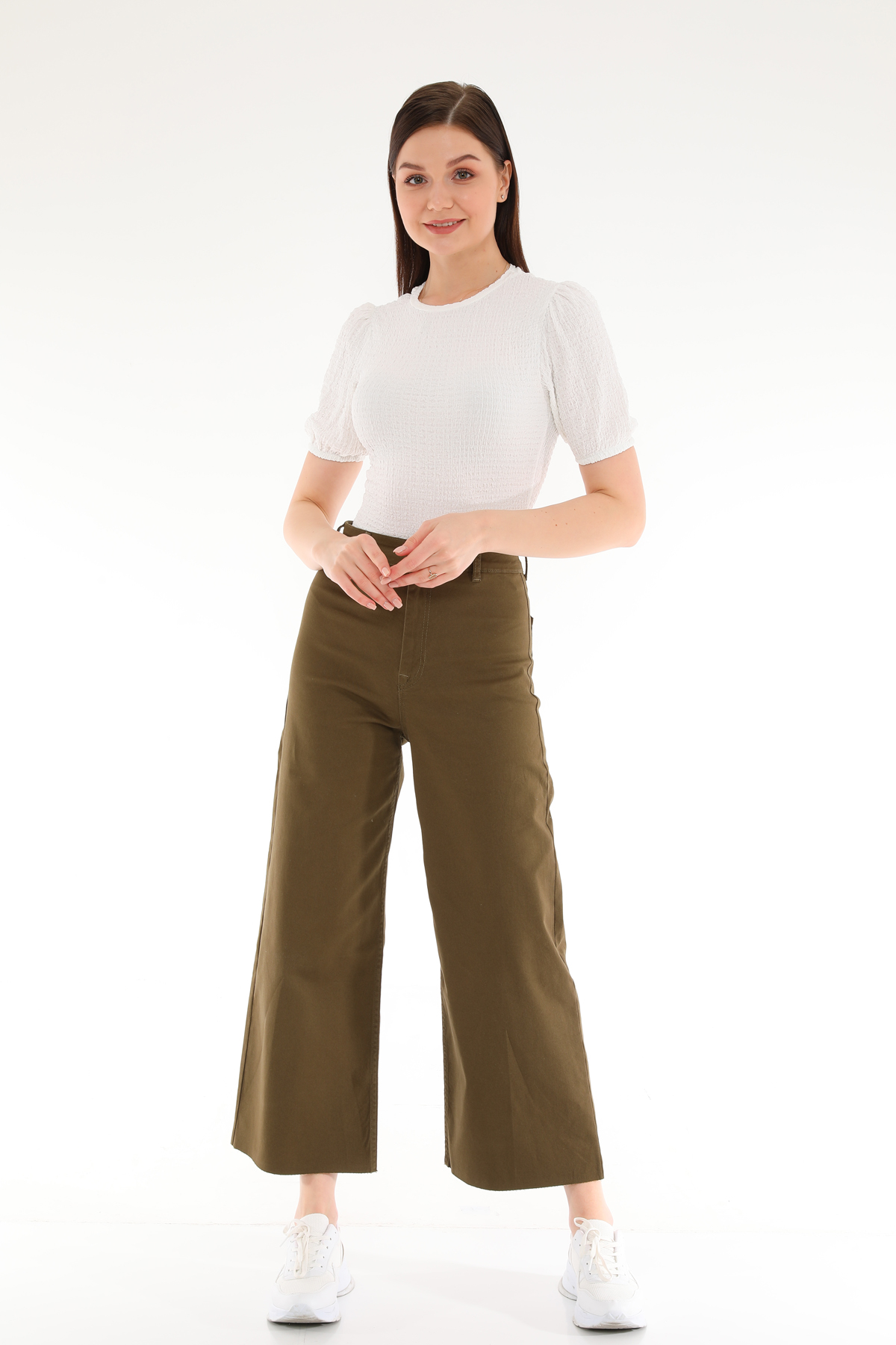 Süper Yüksek Bel Haki Dikişsiz Culotte fit Pantolon