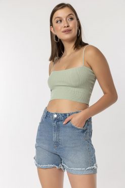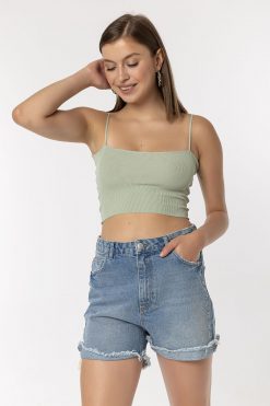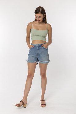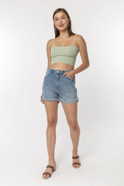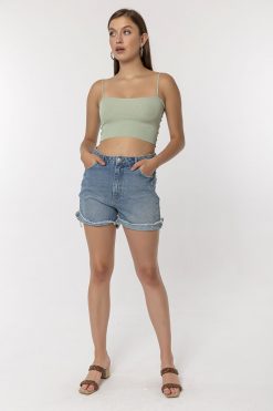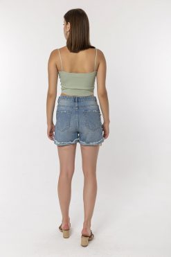 Yandan İp Şeritli Mavi Şort
