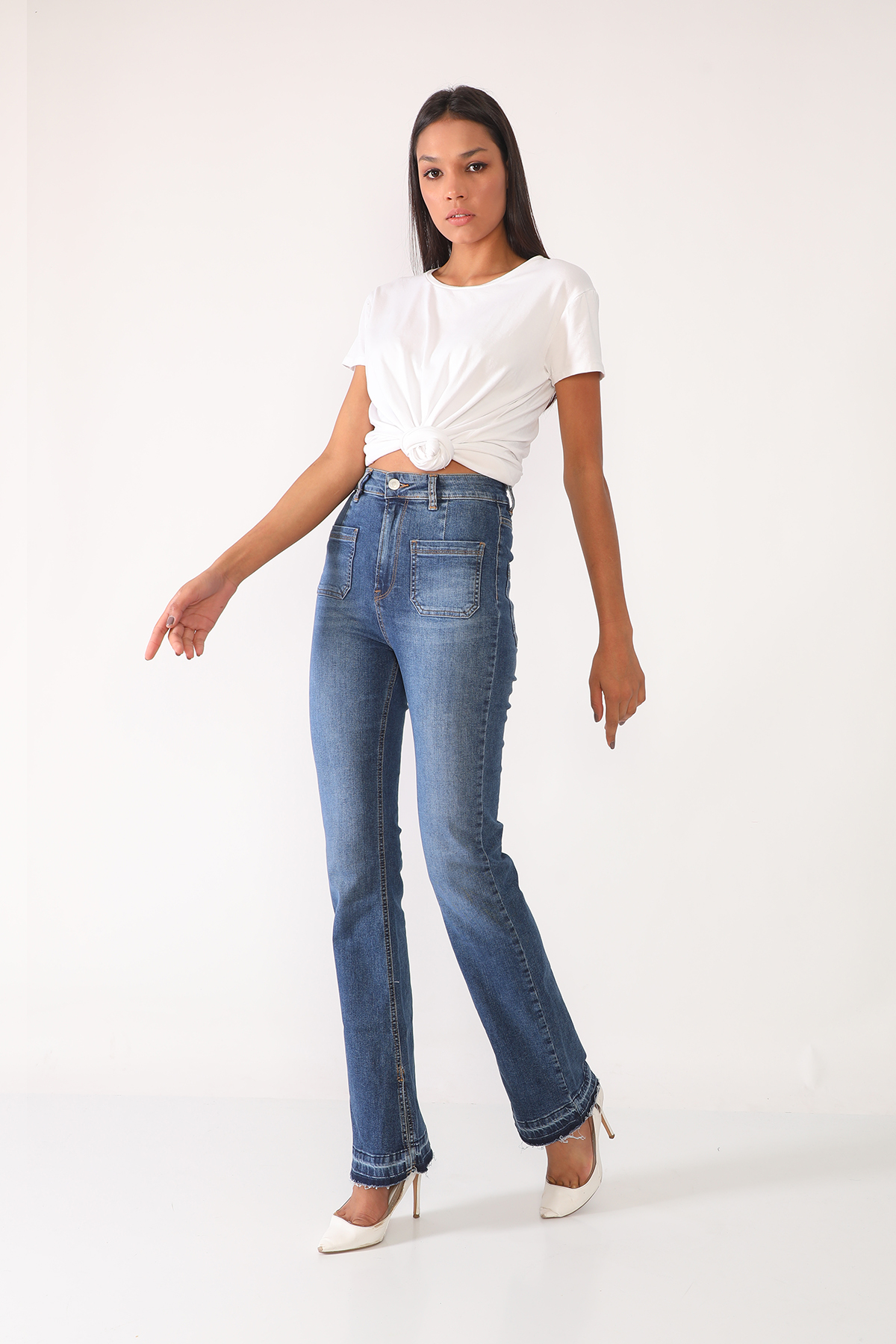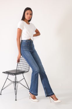 Yüksek Bel Paça Detaylı Mavi Flare Fit Jean