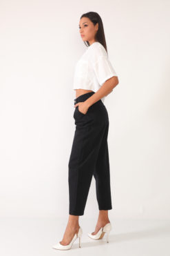 Yüksek Bel Siyah Carrot Fit Non-Denim Pantolon